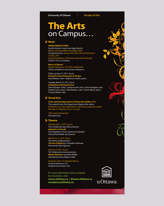 The Arts on Campus Ad Ad for the Arts on Campus. Using a strong, dark background, the ad describes colourful events that are happening on campus. Comments are closed.